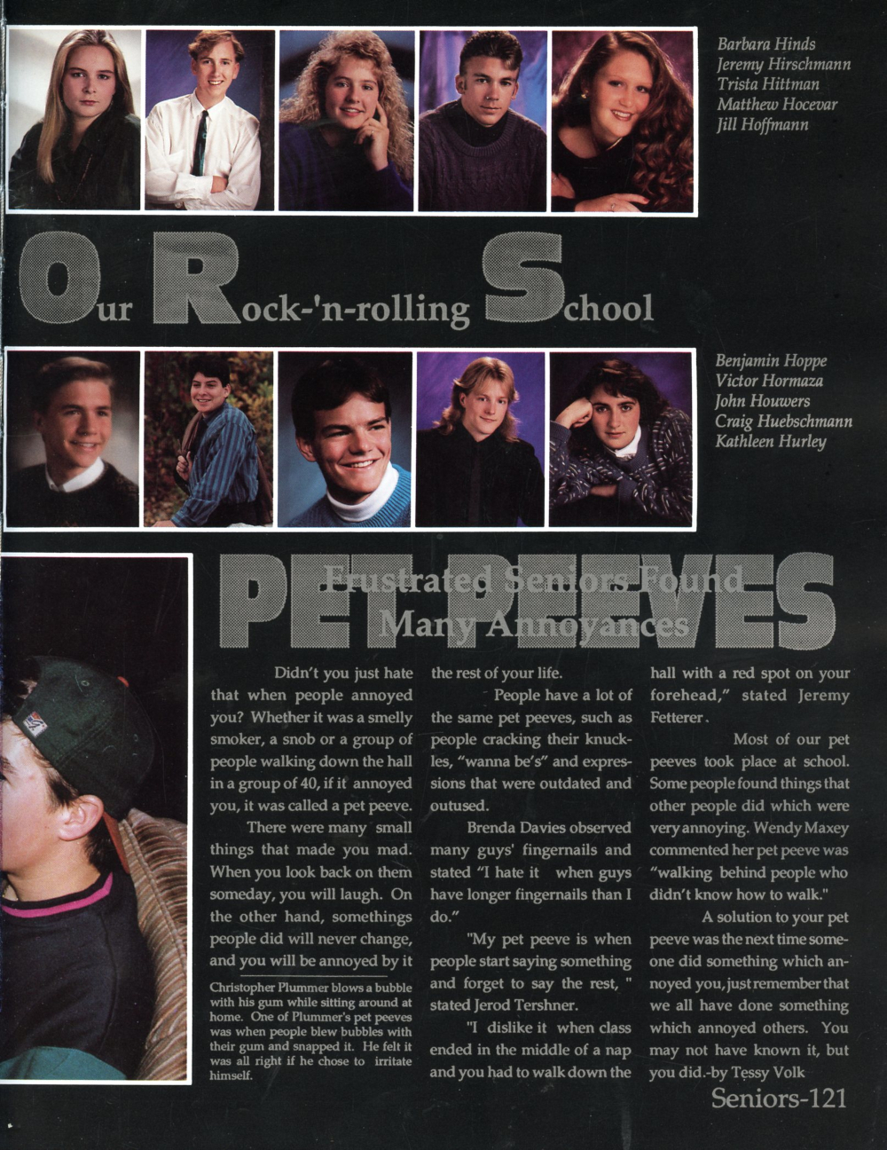 1993 Sheboygan South High School Yearbook Page 121: Barbara Hinds, Jeremy Hirschmann, Trista Hittman, Matthew Hocevar, Jill Hoffmann, Benjamin Hoppe, Victor Hormaza, John Houwers, Craig Huebschmann, Kathleen Hurley.