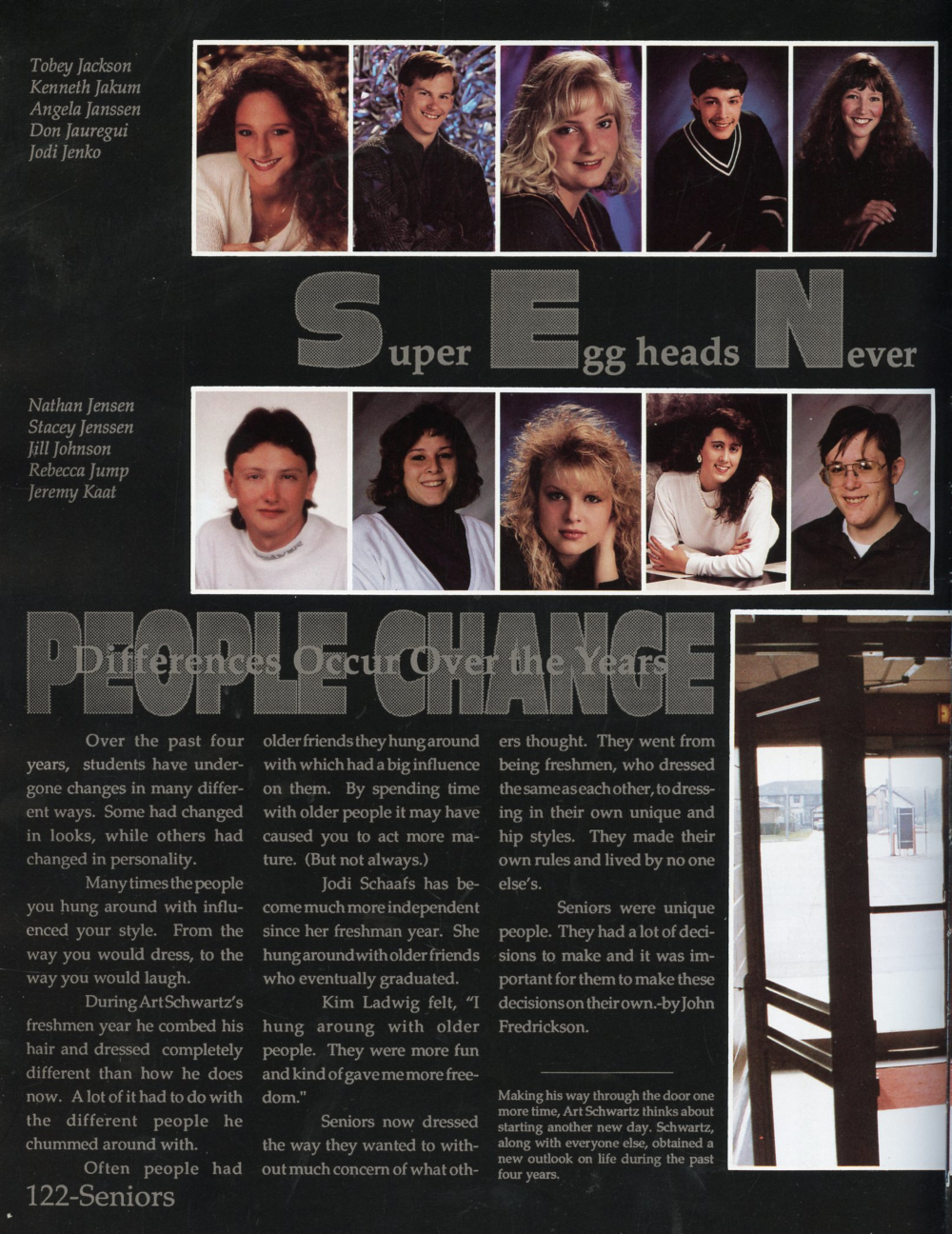 1993 Sheboygan South High School Yearbook Page 122: Tobey Jackson, Kenneth Jakum, Angela Janssen, Don Jauregui, Jodi Jenko, Nathan Jensen, Stacey Jenssen, Jill Johnson, Rebecca Jump, Jeremy Kaat.