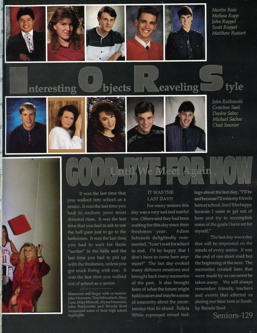 1993 Sheboygan South High School Yearbook Page 129: Martin Ruiz, Melissa Rupp, John Ruppel, Scott Ruppel, Matthew Russart, John Rutkowski, Gretchen Saak, Deedra Sabec, Michael Sachse, Chad Saunier.