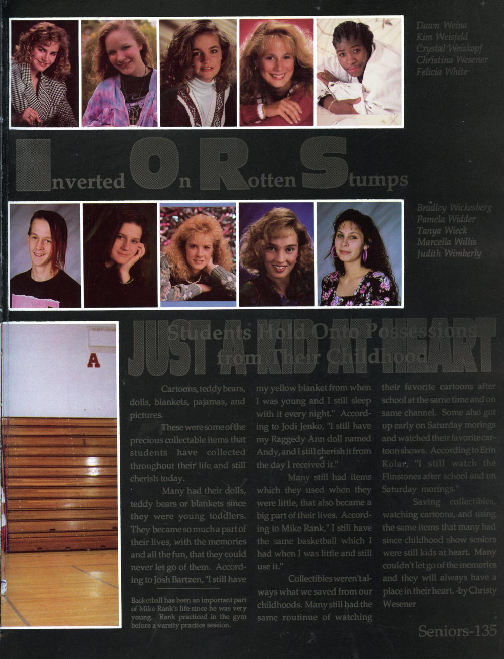 1993 Sheboygan South High School Yearbook Page 135: Dawn Weina, Kim Weisfeld, Crystal Weiskopf, Christina Wesener, Felicia White, Bradley Wickesberg, Pamela Widder, Tanya Wieck, Marcella Willis, Judith Wimberly.