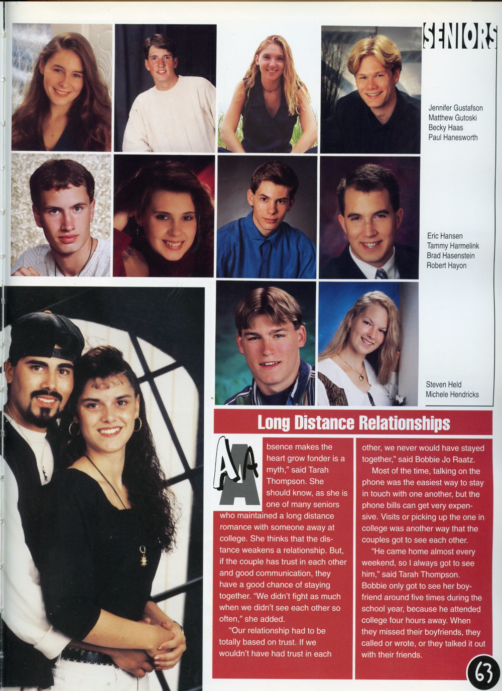 1995 Sheboygan North High School Yearbook Page 63: Jennifer Gustafson, Matthew Gutoski, Becky Haas, Paul Hanesworth, Eric Hansen, Tammy Harmelink, Brad Hasenstein, Robert Hayon, Steven Held, Michele Hendricks.