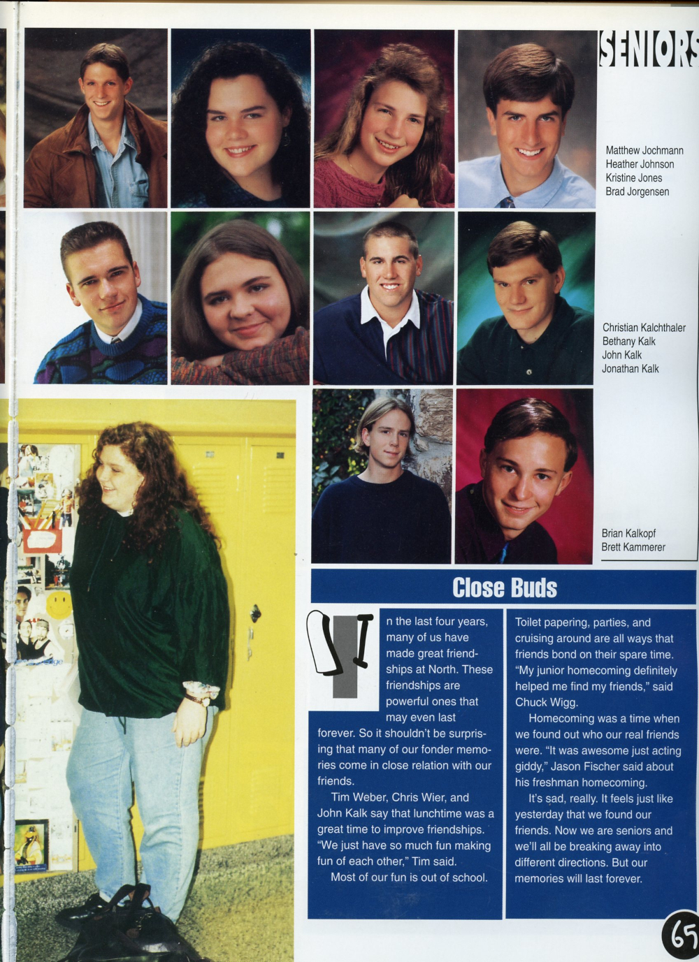 1995 Sheboygan North High School Yearbook Page 65: Matthew Jochmann, Heather Johnson, Kristine Jones, Brad Jorgensen, Christian Kalchthaler, Bethany Kalk, John Kalk, Jonathan Kalk, Brian Kalkopf, Brett Kammerer.