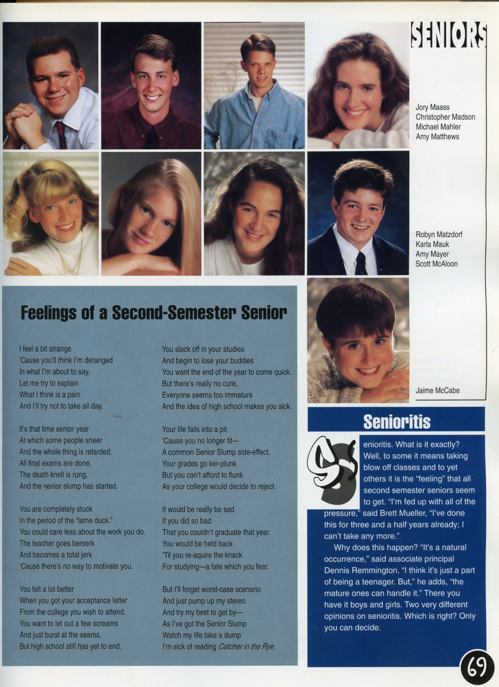 1995 Sheboygan North High School Yearbook Page 69: Jory Maass, Christopher Madson, Michael Mahler, Amy Matthews, Robyn Matzdorf, Karla Mauk, Amy Mayer, Scott McAloon, Jaime McCabe.