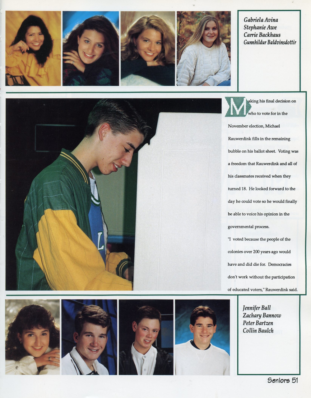 1995 Sheboygan South High School Yearbook Page 51: Gabriela Avina Stephanie Awe, Carrie Backhaus, Gunnildur Baldvinsdottir, Jennifer Ball, Zachary Bannow, Peter Bartzen, Collin Baulch.