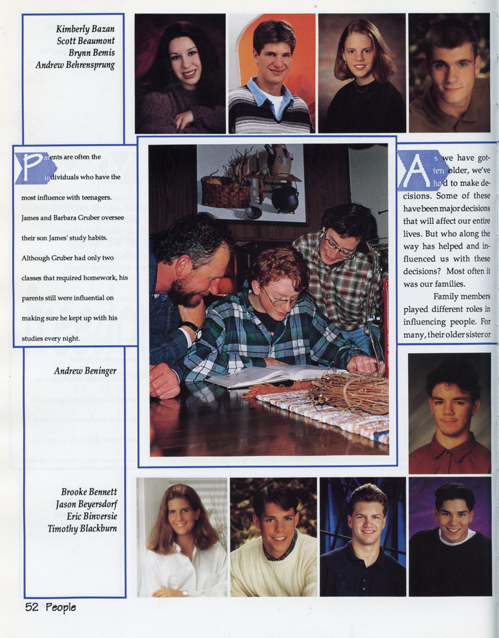 1995 Sheboygan South High School Yearbook Page 52: Kimberly Bazan, Scott Beaumont, Brynn Bemis, Andrew Behrensprung, Andrew Beninger, Brooke Bennett, Jason Beyersdorf, Eric Binversie, Timothy Blackburn.