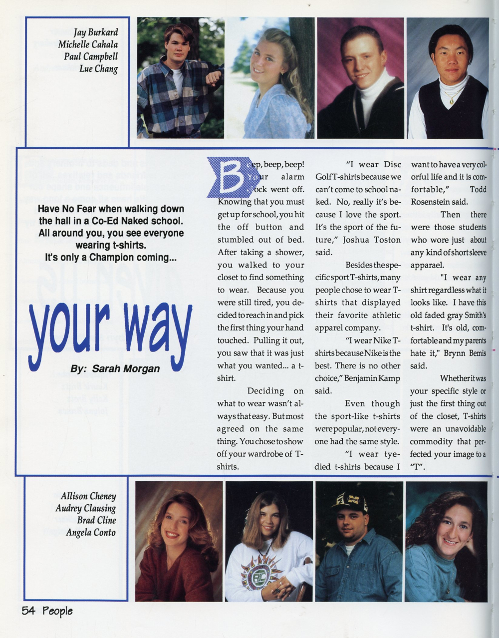 1995 Sheboygan South High School Yearbook Page 54: Jay Burkard, Michelle Cahala, Paul Campbell, Lue Chang, Allison Cheney, Audrey Clausing, Brad Cline, Angela Conto.