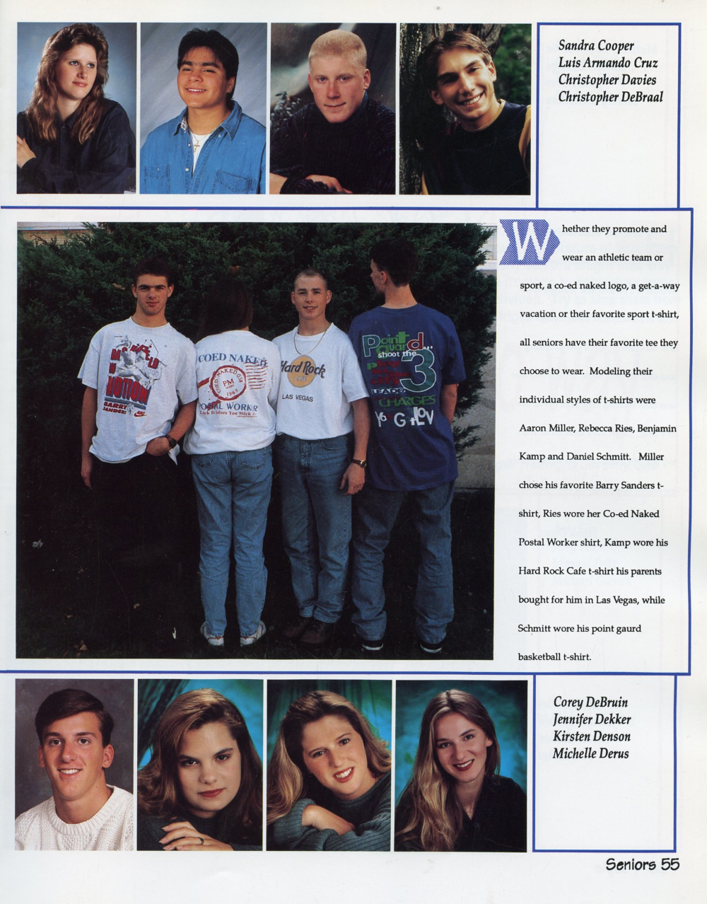 1995 Sheboygan South High School Yearbook Page 55: Sandra Cooper, Luis Armando Cruz, Christopher Davies, Christopher DeBraal, Corey DeBruin, Jennifer Dekker, Kirsten Denson, Michelle Derus.