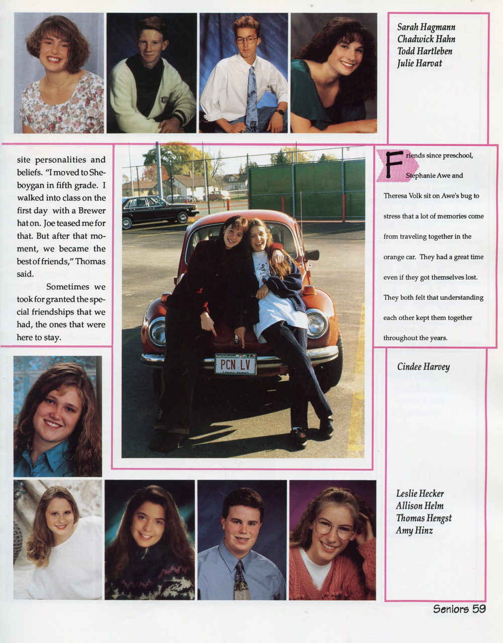 1995 Sheboygan South High School Yearbook Page 59: Sarah Hagmann, Chadwick Hahn, Todd Hartleben, Julie Harvat, Cindee Harvey, Leslie Hecker, Allison Helm, Thomas Hengst, Amy Hinz.