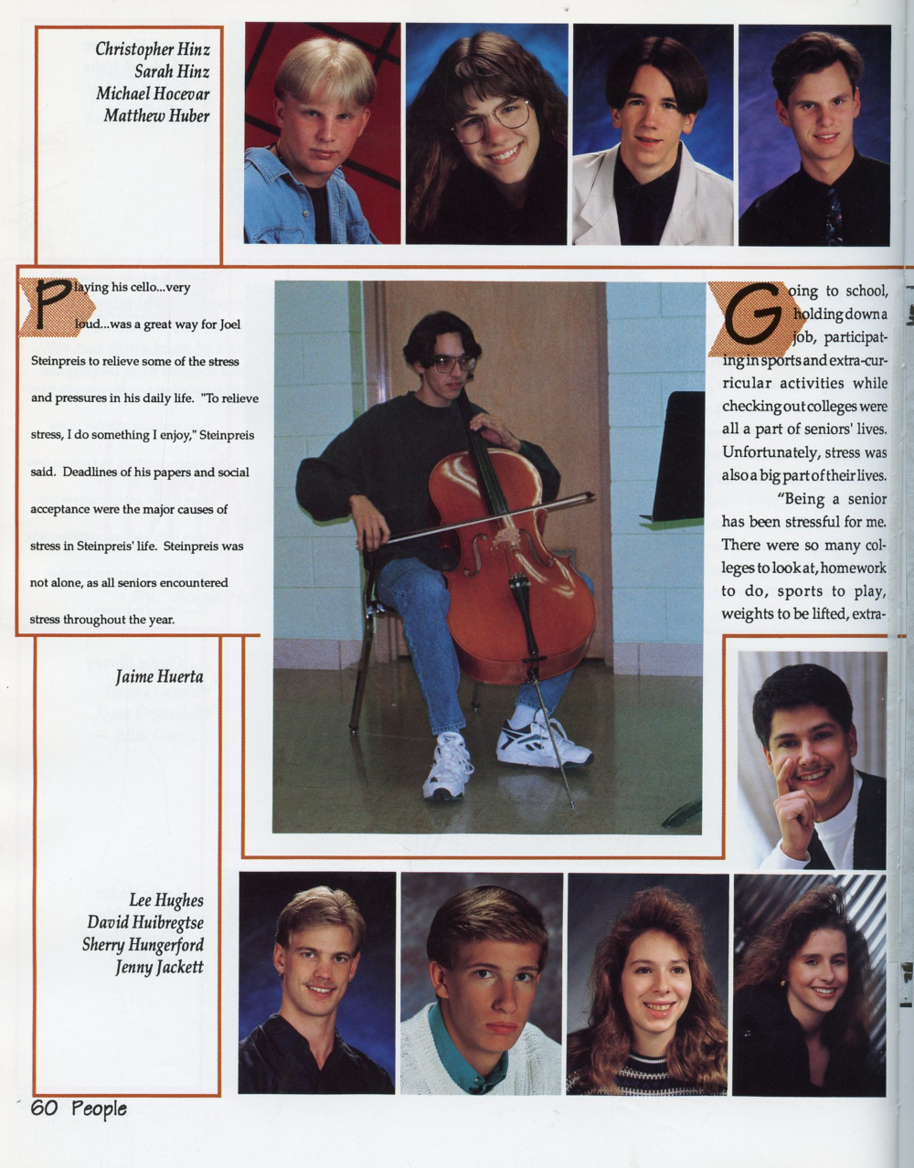1995 Sheboygan South High School Yearbook Page 60: Christopher Hinz, Sarah Hinz, Michael Hocevar, Matthew Huber, Jaime Huerta, Lee Hughes, David Huibregtse, Sherry Hungerford, Jenny Jackett.