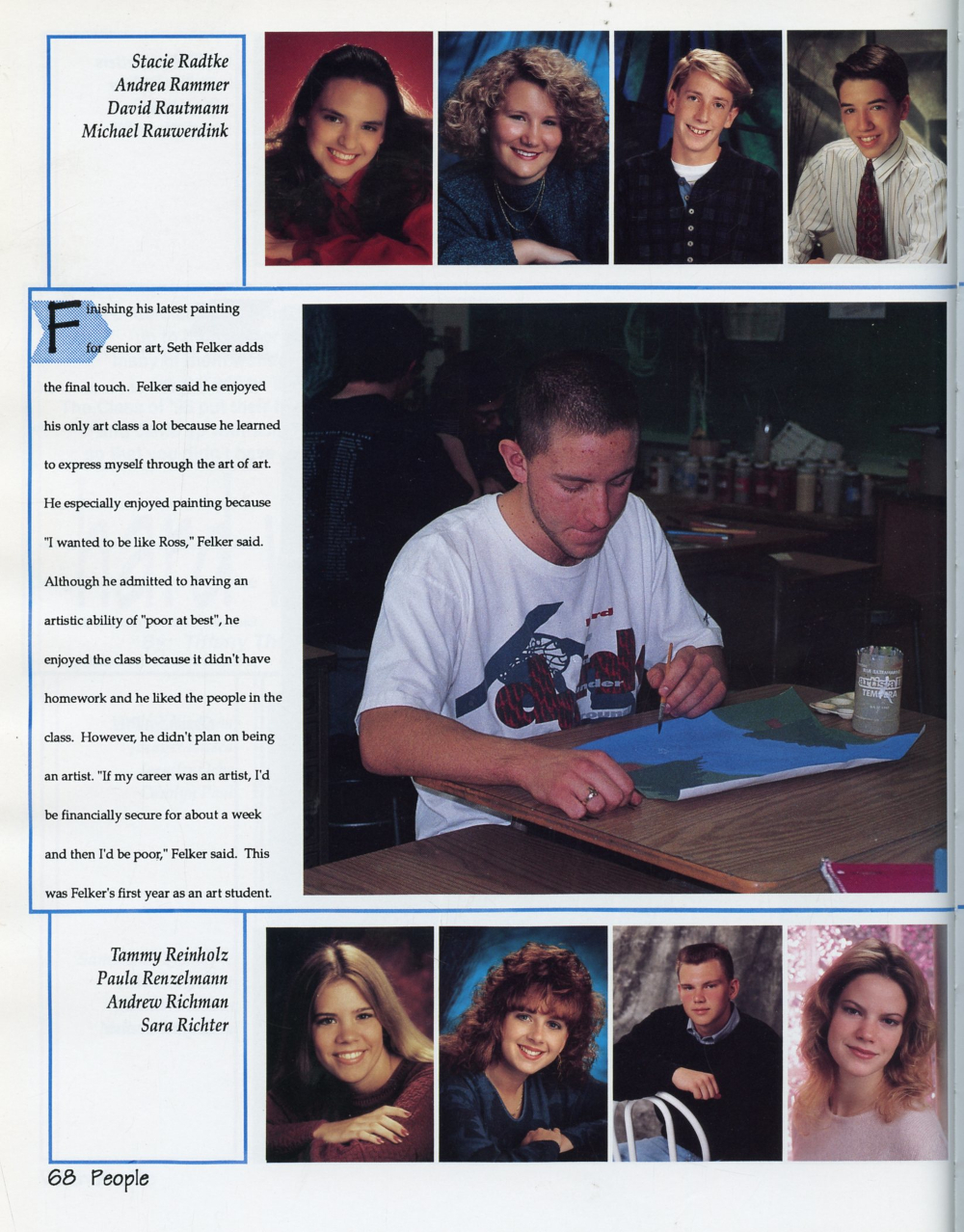 1995 Sheboygan South High School Yearbook Page 68: Stacie Radtke, Rndrea Rammer, David Rautmann, Michael Rauwerdink, Tammy Reinholz, Paula Renzelmann, Andrew Richman, Sara Richter.
