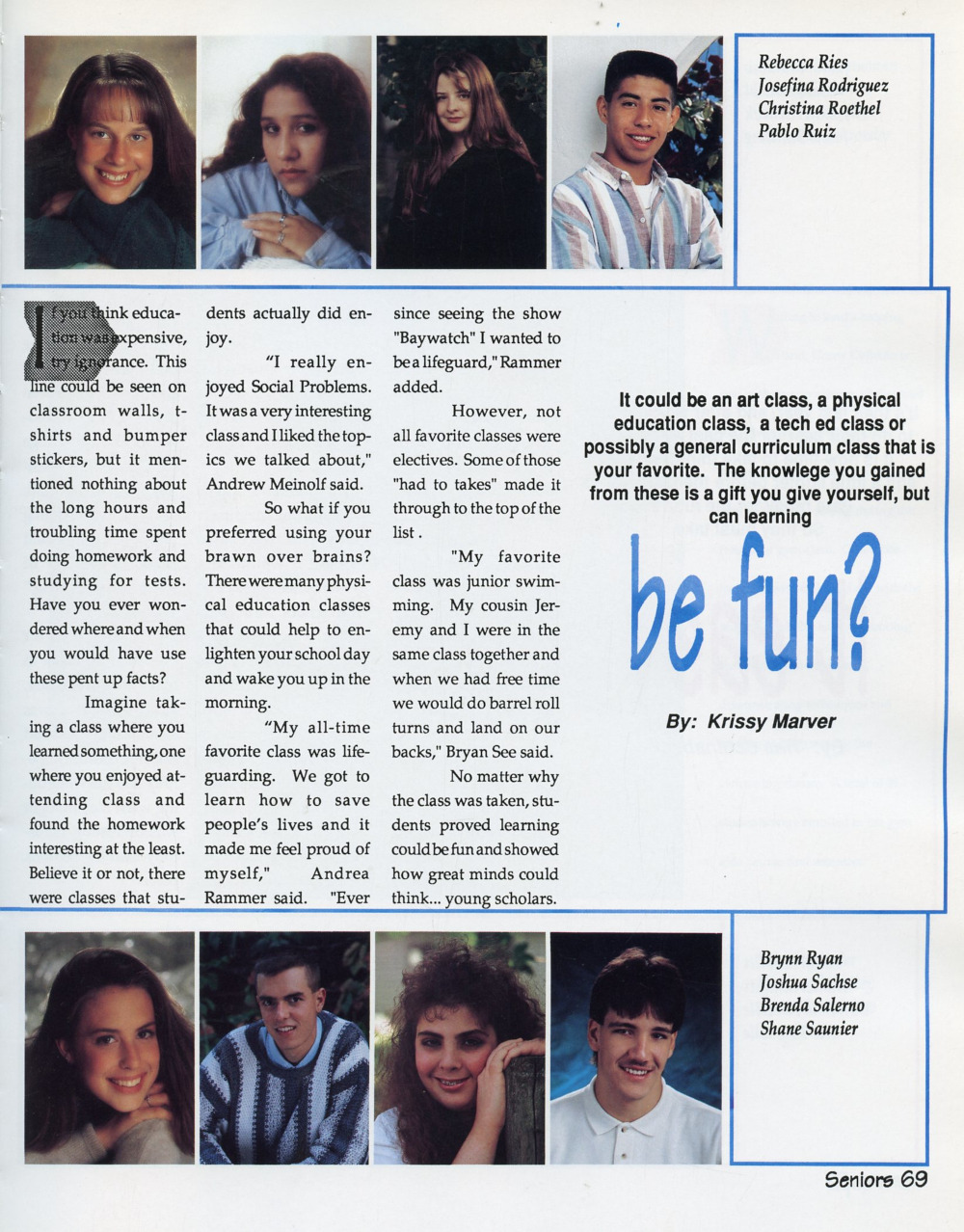 1995 Sheboygan South High School Yearbook Page 69: Rebecca Ries, Josefina Rodriguez, Christina Roethel, Pablo Ruiz, Brynn Ryan, Joshua Sachse, Brenda Salerno, Shane Saunier.
