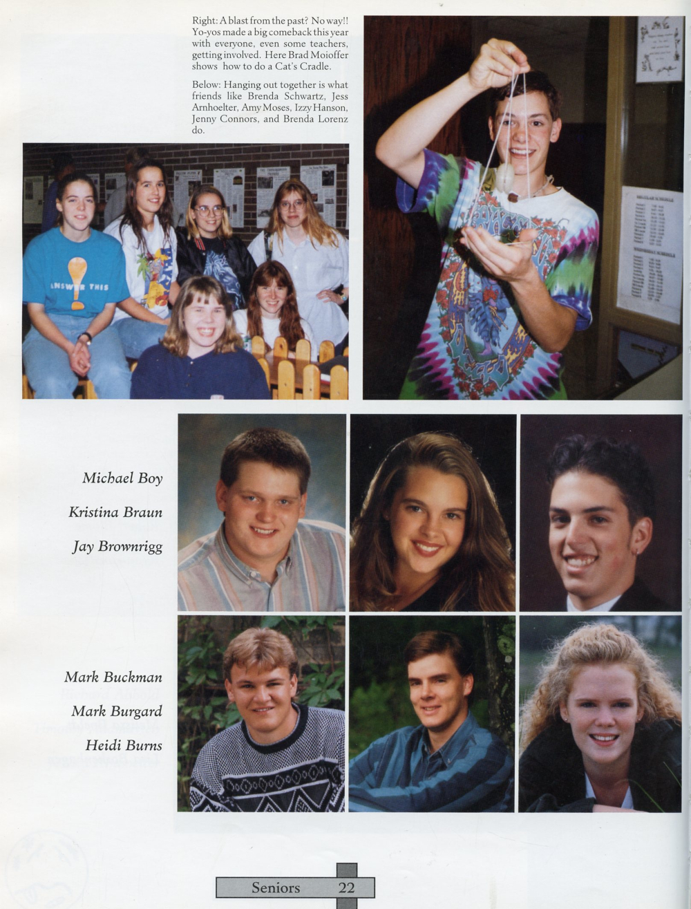 1996 Sheboygan Falls High School Yearbook Page 22: Michael Boy, Kristina Braun, Jay Brownrigg, Mark Buckman, Mark Burgard, Heidi Burns.