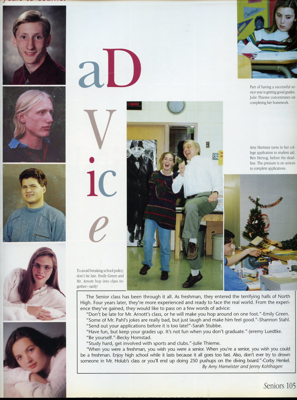 1996 Sheboygan North High School Yearbook Page 105: Trevor Goetz, Forrest Gross, Anthony Haen, Paula Handrow, Rachel Hasenstein.