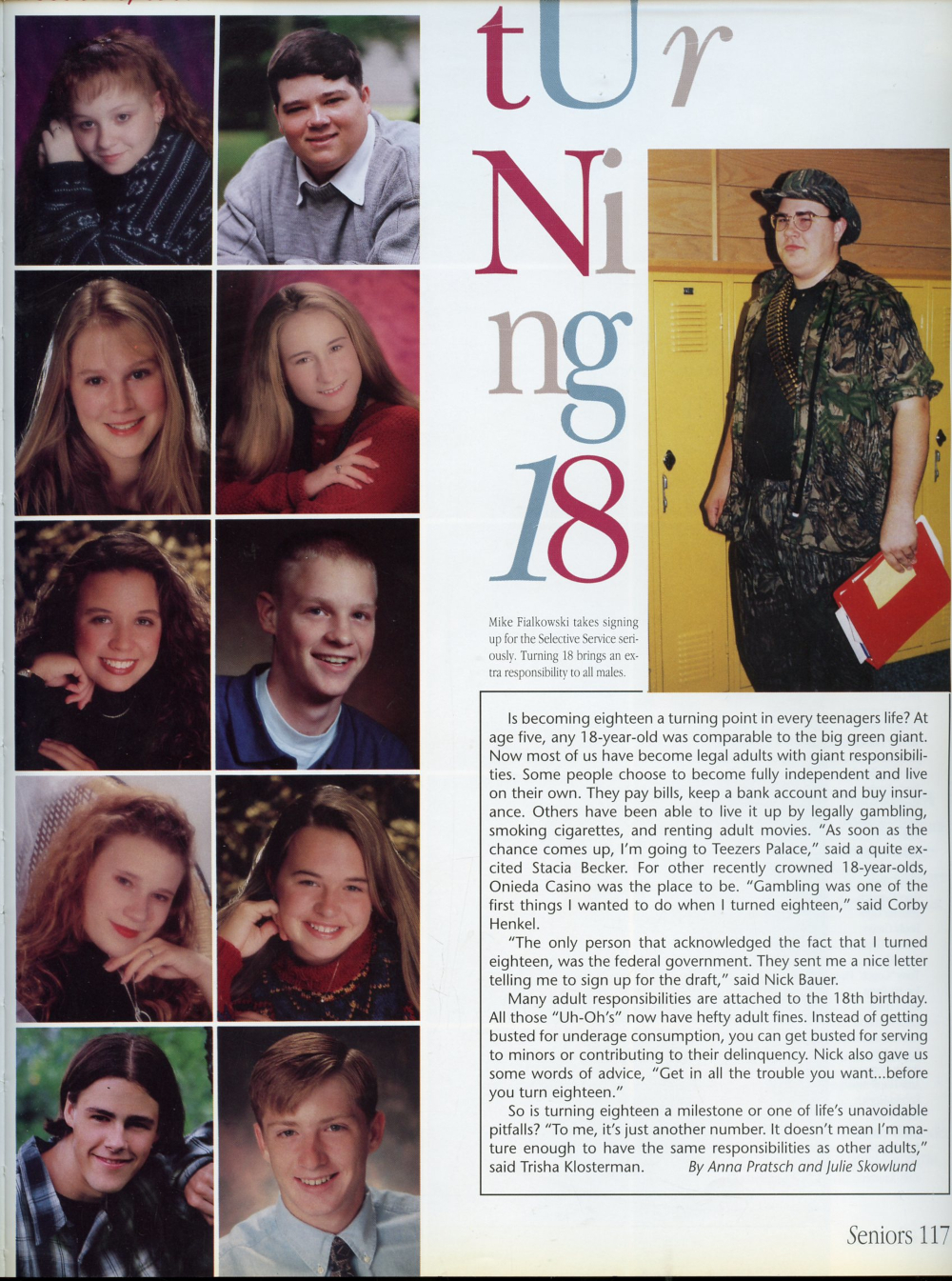 1996 Sheboygan North High School Yearbook Page 117: Anne Schwartz, Daniel Schwartz, Julia Skowlund, Maria Smith, Nacole Spencer, Jerry Sperhake, NIcole Stockel, Sarah Stubbe, Michael Tenhaken, Daniel Tess.