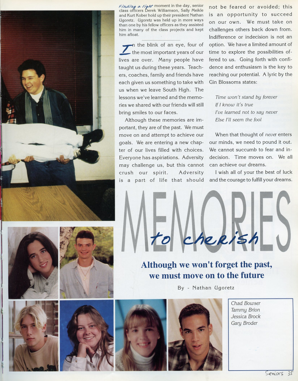 1996 Sheboygan South High School Yearbook Page 35: Tara Berger, Jason Bergin, Chad Bowser, Tammy Brion, Jessica Brock, Gary Broder.