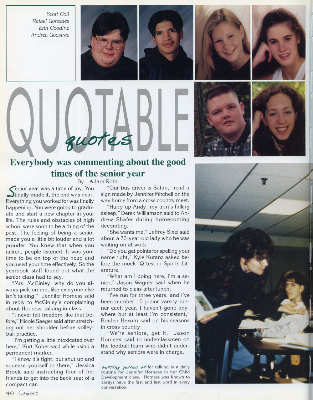 1996 Sheboygan South High School Yearbook Page 40: Scott Goll, Rafael Gonzales, Erin Goodine, Andrea Goostree, Chad Gross, Jenifer Gruber.