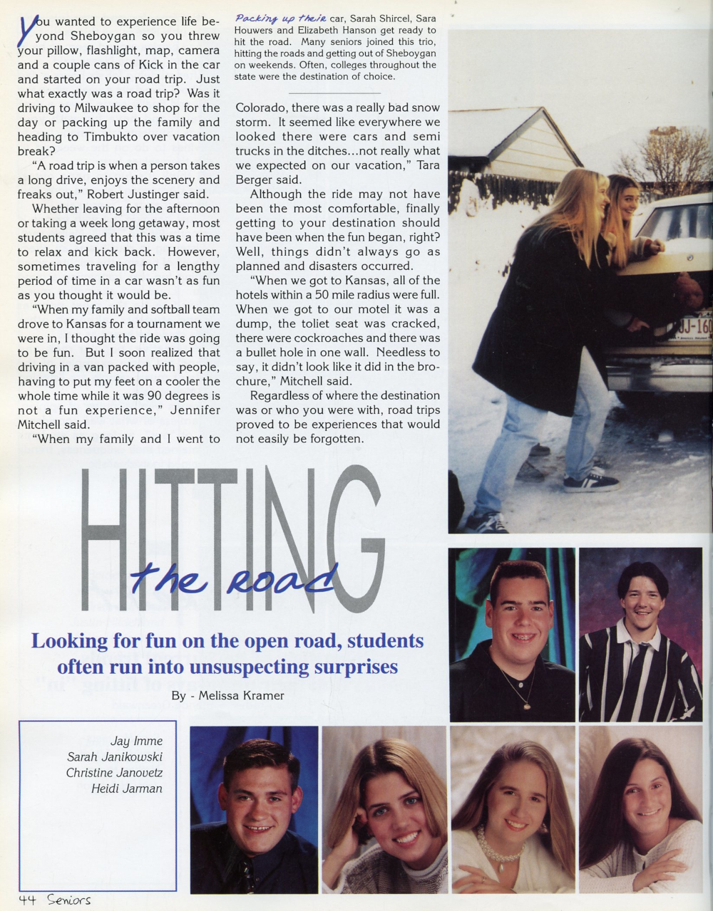 1996 Sheboygan South High School Yearbook Page 44: Christopher Kaker, Craig Kalkopf, Jay Imme, Sarah Janikowski, Christine Janovetz, Heidi Jarman.