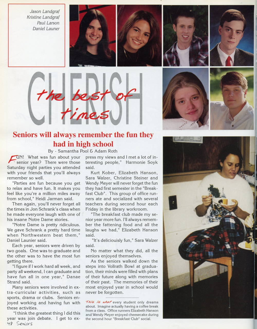 1996 Sheboygan South High School Yearbook Page 48: Jason Landgraf, Kristine Landgraf, Paul Larson, Daniel Launer, Amy Leicht, Rebecca Leick.