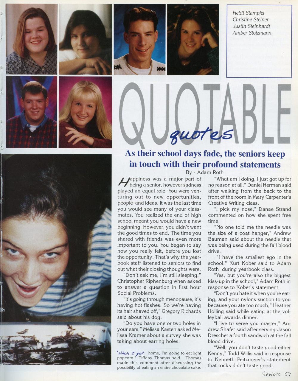 1996 Sheboygan South High School Yearbook Page 57: Heidi Stampfel, Christine Steiner, Justin Steinhardt, Amber Stolzmann, Ryan Shircel, Sarah Shircel.