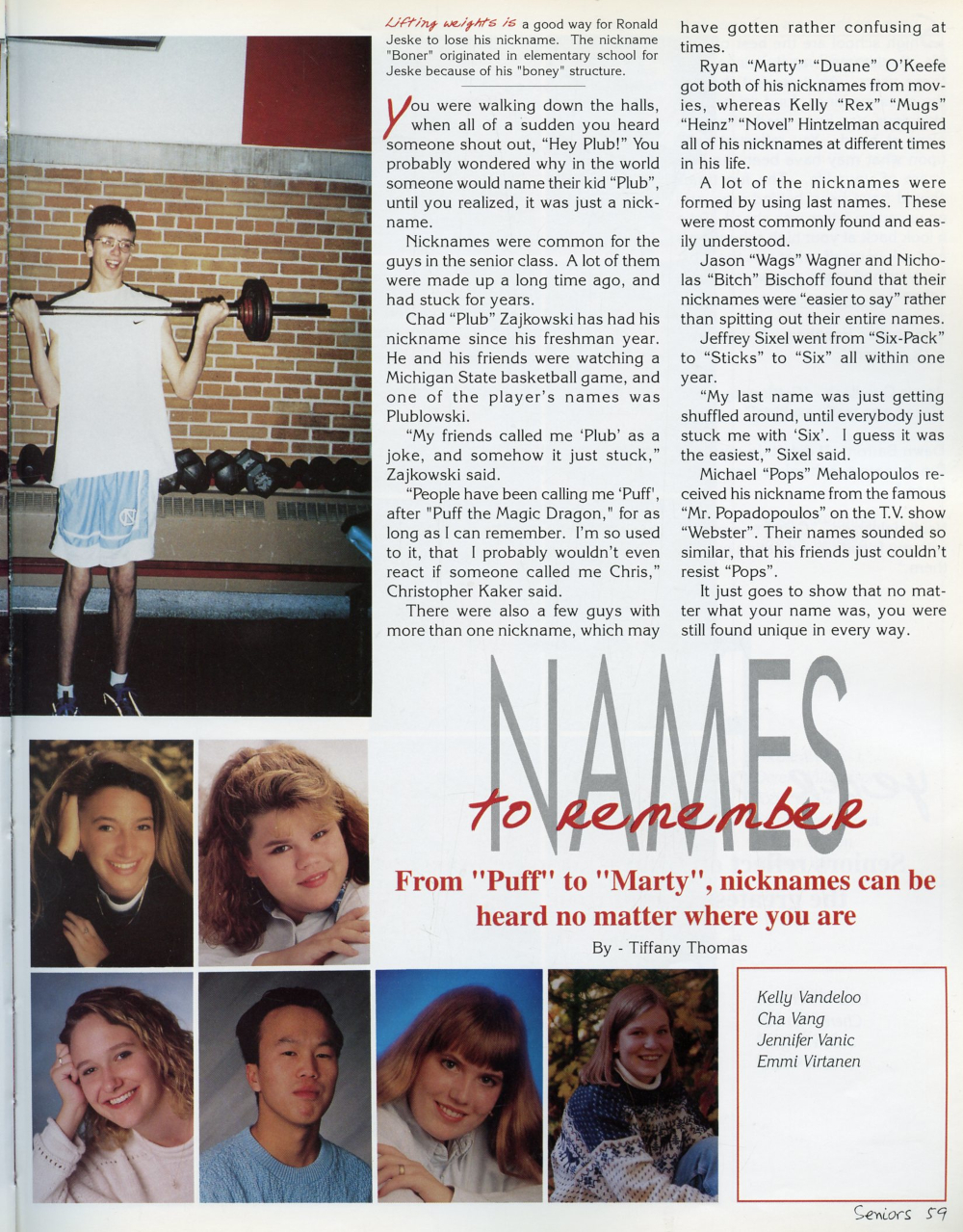 1996 Sheboygan South High School Yearbook Page 59: Tracy Trautman, Sara Trossen, Kelly Vandeloo, Cha Vang, Jennifer Vanic, Emmi Virtanen.