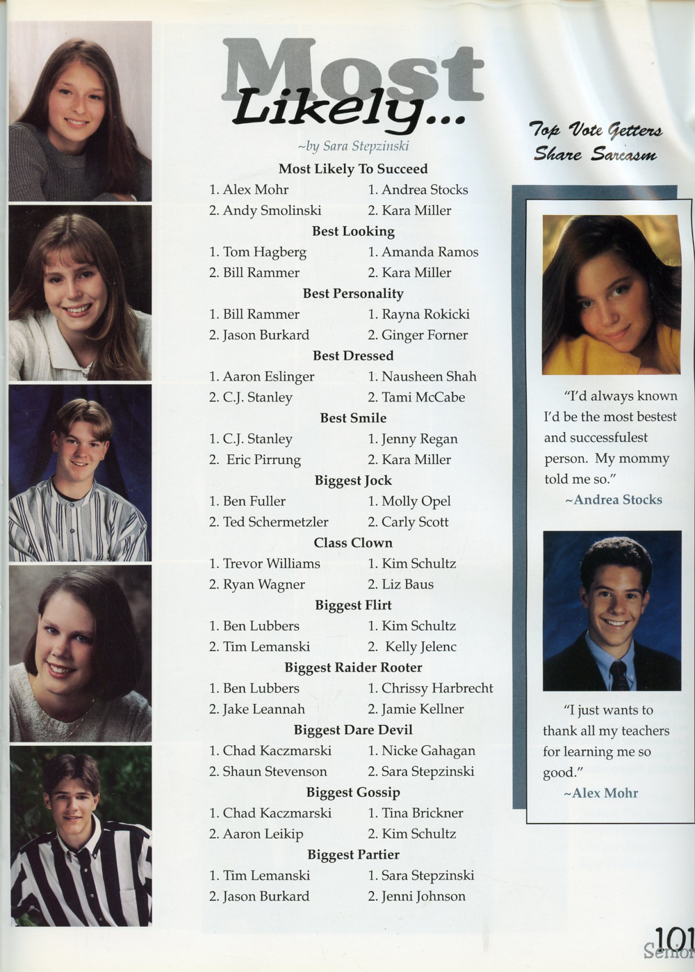 1997 Sheboygan North High School Yearbook Page 101: Melissa Brunette, Amanda Byrum, Timothy Carpenter, Elizabeth Clarke, Andrew Deehr.
