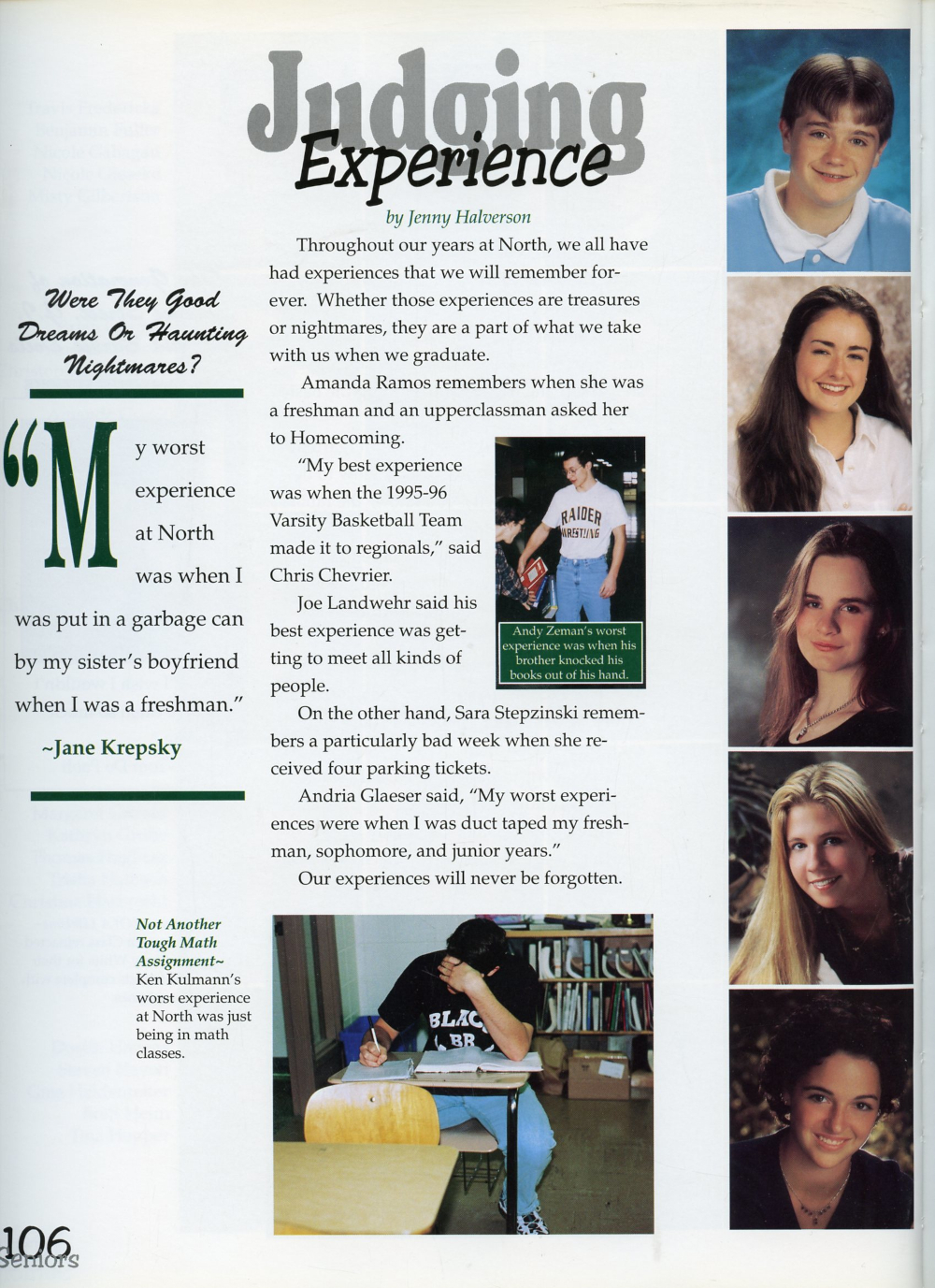 1997 Sheboygan North High School Yearbook Page 106: Ryan Hering, Elizabeth Hittman, Megan Husband, Jennifer Johnson, Jamie Kellner.