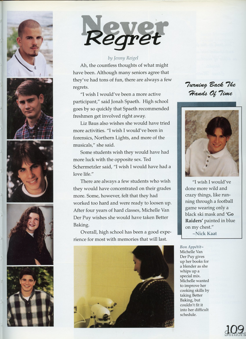 1997 Sheboygan North High School Yearbook Page 109: Paul Kudirko, Jake Leannah, Aaron Leikip, Carrie Lubach, Tony Mancheski.