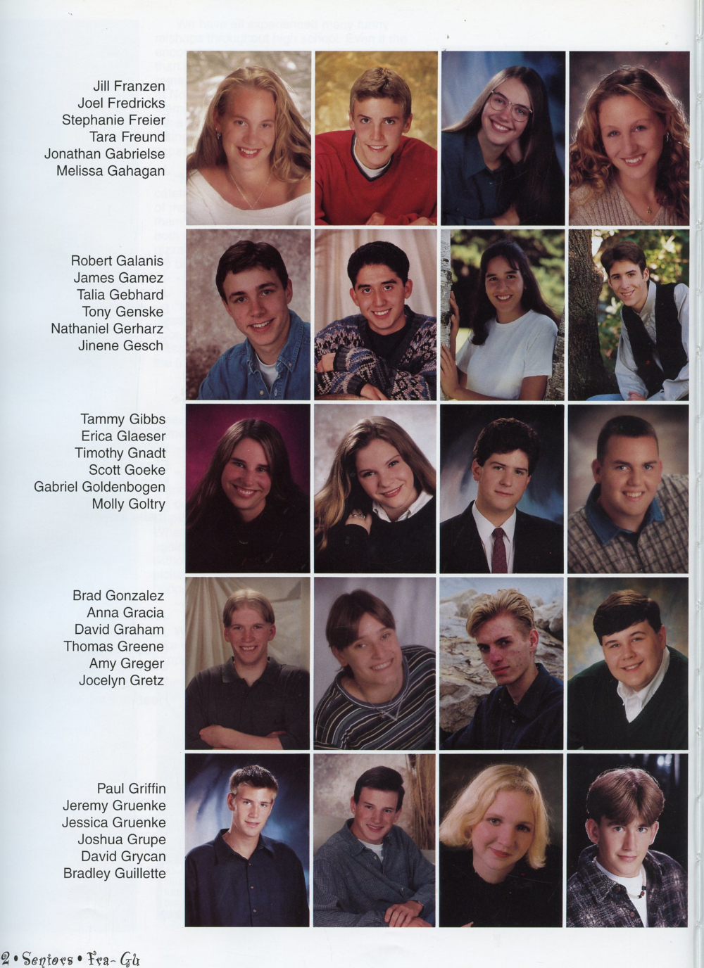 102: Jill Franzen, Joel Fredricks, Stephanie Freier, Tara Freund, Robert Galanis, James Gamez, Talia Gebhard, Tony Genske, Tammy Gibbs,