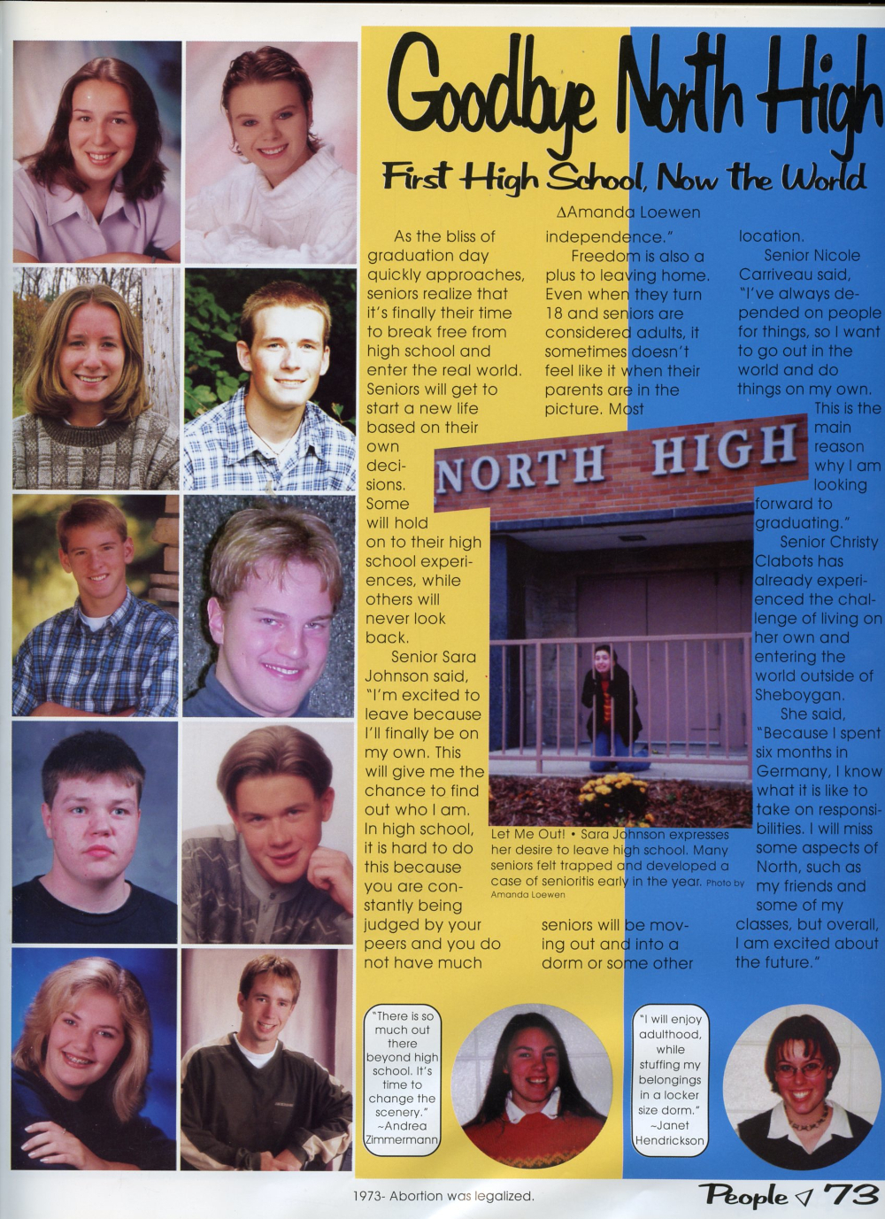 1999 Sheboygan North High School Yearbook Page 73: Lori Fleischmann, Jessica Fredrich, Angela Goetsch, Jamey Goetsch, Allen Green, Arne Griffel, Travis Heiberger, Nicholas Hein, Amanda Hert, Peter Herzog.