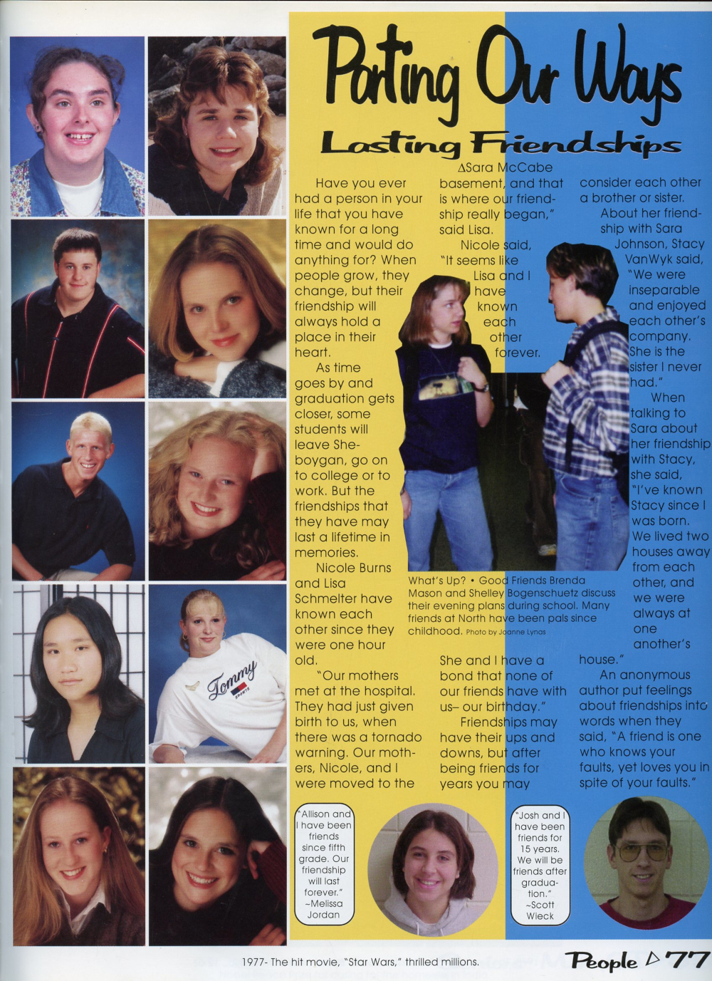 1999 Sheboygan North High School Yearbook Page 77: Lejla Lagumdzic, Erin Lamb, Roger Latowski, Sarah Law, Robert Lemanski, Susan Lenn, Yang Mee Lor, Britt Lorge, Michaela Marquardt, Colleen Marsho.