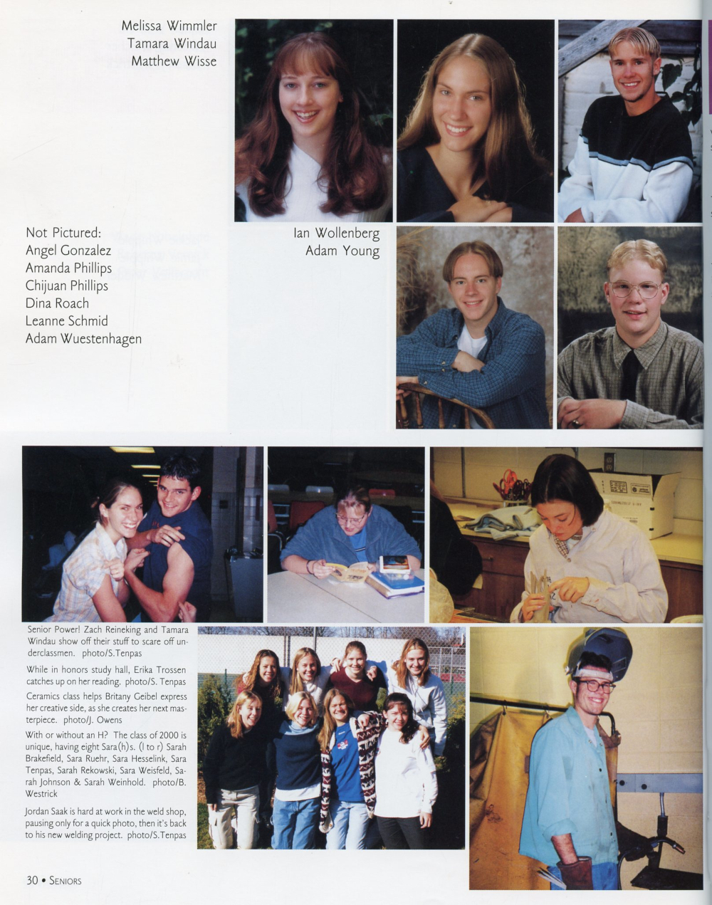 2000 Sheboygan Falls High School Yearbook Page 30: Melissa Wimmler, Tamara Windau, Matthew Wisse, Ian Wollenberg, Adam Young, Angel Gonzalez, Amanda Phillips, Chijuan Phillips, Dina Roach, Leanne Schmid, Adam Wuestenhagen.