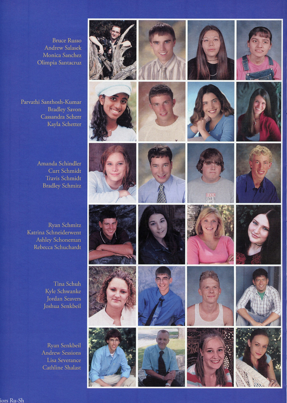 2006 Sheboygan North High School Yearbook Page 130: Bruce Russo, Andrew Salasek, Monica Sanchez, Olimpia Santacruz, Parvathi Santhosh-Kumar, Bradley Savon, Cassandra Scherr, Kayla Schetter, Amanda Schindler, Curt Schmidt, Travis Schmidt, Bradley Schmitz, Ryan Schmitz, Katrina Schneiderwent, Ashley Schoneman, Rebecca Schuchardt, Tina Schuh, Kyle Schwanke, JOrdan Seavers, Joshua Senkbeil, Ryan Senkbeil, Andrew Sessions, Lisa Severance, Cathline Shalast.