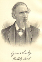 DAVID W. GILBERT. The pioneers of Wisconsin should receive the highest commendation and praise, from the fact that they have paved the way for civilization; and among those who have been prominent in the upbuilding of Sheboygan County is this gentleman, who has been a resident of Lima Township since 1846. He was born in Wayne County, N.Y., May 24, 1818, being a son of Charles and Lydia (Warner) Gilbert, and is the youngest and only living child in a family of three sons and six daughters. The father of our subject was born April 5, 1773, in Massachusetts, and died in 1855. He remembered very distinctly many incidents of the Revolutionary War, and when the recruiting officer came to his father's home the latter was at work in the field, and was led away to the service. The War of 1812 was also very distinct in his memory, and the early history of this country was at his tongue's end. He and his wife were devout members of the Methodist Episcopal Church, and in political faith he was a Jackson Democrat. His wife was also born in the old Bay State, May 11, 1774. She lived to an extreme old age, dying in February 1870, when in her ninety-seventh year. Mr. Gilbert has in his possession an old family record written by his uncle when over seventy years of age. Through it was written with a quill pen, it is like a piece of fine copy-plate. When his parents removed from Wayne County to Monroe County, N.Y., our subject had only seen three summers, and he continued to reside in the latter county until coming to the West. From boyhood he was used to hard work on a farm, and his early educational training was commenced in a primitive log cabin, with wooden benches and an old-fashioned fireplace. The school was kept up by private subscription, and the birth rod occupied a prominent place in the discipline of that institution of learning. Until he was twenty-three years of age, David Gilbert lived with his parents and dutifully assisted them. He then embarked in the business of life for himself, starting without a dollar. What was more valuable, however, to him, was his sturdy, industrious, honest manhood, which was wrought out of him a grand success. On leaving the old homestead, he chose for his companion in life Miss Keziah J. Ferris, a native of New York. They were married on the 22d of May, 1842, and five children were born of their union. George Newton married Miss Ella Wheeler, and has two children. He is a successful farmer of Kenosha County, Wis. Rev. Henry Franklin is a Baptist minister of Thompson, Ill. He received a superior education in the High School at Sheboygan, and in Appleton, Wis., and subsequently pursued his studies in Beaver Dam, Wis., and in the Baptist Theological Seminary of Chicago, from which he graduated. He married Miss Katie Mason, and has a family of four children. Harriet E. is the wife of William Halter, a farmer of Lyndon Township. She was a teacher for several years in this county. They have one child. Helen E. is the wife of A. T. Dye, of Morris, Minn., a general merchant, and they have one child. Leonard D. is engaged in farming in Clark County, S. Dak. He married Miss Jane De Braal, and has three children. In May, 1846, Mr. Gilbert started with his family for Buffalo, whence they went by the Great Lakes to Sheboygan, which was then but a hamlet. The pier known as the Farnsworth Pier was still standing, and was one of the principal points in the village. It was erected and controlled by William Farnsworth, an Indian trader, who married for his second wife an Indian squaw. Center Street was then the main thoroughfare, and Eighth Street, which is now the main street of the city, was dotted here and there with a few shanties. Much of what is now covered with fine buildings was only a thicket when Mr. Gilbert first saw the place. After two weeks spent in prospecting, he bought sixty-five acres of land in Lima Township, paying $1.25 per acre. Afterward he purchased eighty acres more and devoted himself with energy to its improvement. His first home was a frame building, 16x24 feet, which, with the later addition made to it, is still standing. He is one of the earliest settlers, and remembers the time when Indians were plentiful in the county, and their corn-planting ground was only six miles west of his home. He was present at the first election in the town, was made one of the Supervisors, and has aided in laying out many roads. The family attended church at the Falls, going thither in a cart drawn by oxen. Mr. Gilbert was called upon to mourn the death of his wife, which occurred April 12, 1862. She was interred in the Dye Cemetery, where a monument has been erected to her memory. On the 11th of September, 1878, our subject was again married, the lady of his choice being Miss Mary E. Brown, who was born December 29, 1846, in Ohio, and is a daughter of Esek and Lucy A. (Austin) Brown. She was a successful teacher for several years in this county, and has proven of great assistance to her husband. Her father was born March 31, 1820, in Rhode Island, on a farm, but learned the trade of blacksmith. His is still living, being a resident of Mitchell Township, this county. The farm now owned and carried on by Mr. Gilbert comprises two hundred acres of well-improved land in Lima Township. It is located within five miles of Sheboygan Falls, seven miles from Plymouth, and three and a-half miles from Waldo. The owner has been a valuable citizen and has done his share toward the promotion of all public enterprises. Among the offices he has acceptably held are those of Supervisor, Assessor and Township Treasurer. For many years he has been officially connected with the public-school system, in which he is an earnest believer. He well remembers the famous campaign known as the "Tippecanoe and Tyler, too," and used his first franchise in supporting William Henry Harrison. He is a man of strong and earnest convictions, and is fearless in the advocacy of those principles he deems best