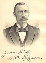 HENRY CHRISTOPHER LAACK, of the city of Plymouth, is one of the leading business men of Sheboygan County, and a representative of a well-know pioneer family. His father, August Ferdinand Laack, was born at Zebien, Prussia, Germany, February 8, 1818. He grew to manhood in his native country, and in 1847, at the age of twenty-nine years, embarked for the United States. On his arrival he came direct to Sheboygan County and purchased forty acres of Government land in the town of Greenbush. The purchase of that small tract of land consumed all the money that he possessed. He immediately began the improving of the land, and as by industry and economy he secured more means, he added to his first purchase, while by hard work and tireless industry he converted this wild land into a valuable and productive farm. A few years later, he disposed of his farm and bought another in the town of Plymouth, but five years after he sold his second farm and removed to the city of Plymouth, where he built a hotel near the present City Roller-mill. He operated the hotel, which was a noted hostelry in its day, for about five years, and then returned to a farm in Plymouth Township, and re-engaged in agricultural pursuits, for which occupation he had a great love, amounting almost to a fascination. After operating that farm some four years, he sold it, and established, in 1866, the hardware business for his son in Plymouth. Later he removed to a farm in the town of Greenbush, where he remained a few years, when he again returned to Plymouth. In 1882, he purchased the interest of H. C. Imig in the Plymouth Marble Works, with which he was connected for several years. In fact, he financially backed both the hardware and the marble business, though his son had charge of the former, and his son-in-law of the latter. One great ambition of Mr. Laack's life was to see his children well established in a good business, and to this end he spared neither effort nor means. On the 15th of December, 1848, Mr. Laack, Sr., and Miss Dorothea Bade were united in marriage. Mrs. Laack was born in Hanover, Germany, February 14, 1828, and came to America the same year as did her husband. Unto this worthy couple five children were born. August died at the age of ten years; Anna died when three years old; Henry Christopher is the next in order of birth; Matilda is the wife of Henry C. Nickel, of Plymouth; and Ida wedded Dr. Frederick Nause. Having lived in Sheboygan County for about forty years, during which time he became well and favorably known, Mr. Laack was called to his final rest on Tuesday morning, July 26, 1887, of disease of the heart, after an illness of nearly four months. The wife and mother survives her husband, and now resides at the home of her son, H. C. Laack, in Plymouth. August Ferdinand Laack was a man whose integrity was never questioned, and his ample fortune was acquired by honest industry. As a citizen he was esteemed and respected. Personally, he was modest and unobtrusive, as well in later years, when he had acquired a competence, as when, in earlier life, he possessed but little of the material things of this world. he was endowed by nature with a strong physical constitution, but undoubtedly his death, which occurred in his seventieth year, was somewhat hastened by the privations and rugged experiences incident to his pioneer life. Henry Christopher Laack was born in the town of Greenbush, February 17, 1850. He was but a year and a-half old when his father sold his farm and removed to the town of Plymouth. he attended the schools of Plymouth, both German and English, and at the age of fourteen his father took him to Chicago and placed him in a position to learn the tinner's trade. After an apprenticeship of two years he returned. His father then established a hardware business and placed H. C. virtually in charge, though the latter was still but a boy, in his seventeenth year. The business was of course conducted in the father's name while his son was a minor, but on the latter attaining to the age of twenty-one years, it was transferred to him, and he has ever since conducted it. The business career of H. C. Laack has been attended with marked success. There is not doubt that the example and thorough training received from his father, whose memory he holds in the highest respect and esteem, have been important elements in his successful career as a business man. About 1880, Mr. Laack extended his business by adding a dry-goods and grocery department. he now virtually has two stores, as the large rooms in which his well-assorted stock is kept connect only in the rear, at the cashier's desk. It is not flattery to say that Mr. Laack has the best-arranged hardware establishment in the county, and also one of the neatest stores to be found anywhere in this section. By fair dealing and courteous treatment of his customers, he has worked up an extensive trade and gained the confidence of the people, which is far better than bank stock. Mr. Laack has invested large sums of money in building up the city of Plymouth. He is the builder of the Hotel Laack, and of the two business blocks bearing his name, and of his beautiful residence, which is among the finest in Sheboygan County. Besides, he has erected many other residences, thus adding to the growth and beauty of the place, for he is a gentleman who spares neither labor nor money to do well what he undertakes. In politics, Mr. Laack is a Republican, though he has never sought official position, always having had extensive business interests, to which he has devoted his entire time and attention, thereby achieving a marked success. On May 17, 1880, our subject was married to Miss Mary C. Wolff, a daughter of Hon. Julius Wolff, of the town of Rhine, of whom a biography may be found elsewhere in this work. Mrs. Laack was born in the town of Rhine, may 30, 1854. She is an educated and accomplished lady, who was for some time a student in the Wisconsin State Normal School
