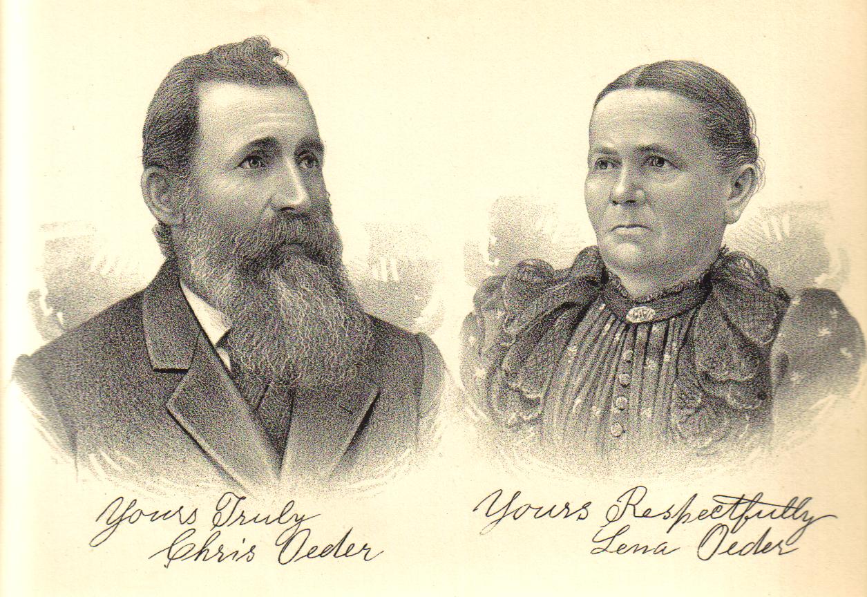 CHRISTOPHER OEDER. It was on the 10th of July, 1847, that Mr. Oeder set foot on the soil of Wisconsin for the first time. he is a man well and favorably known, having spent forty-six years in this State, twenty years of which time he was a resident of Fond du Lac County. He is one of the worthy pioneers, and is now a resident of section 7, Lima Township, Sheboygan County. The birth of our subject occurred in Baden, Germany, September 17, 1835. His father was twice married. The first wife was Miss Waggershauser, their marriage occurring in 1814. She bore him one son, John, who resides in Germany. After the first Mrs. Oeder's death, he married Miss Elizabeth Leffel, by whom he had eight children, seven sons and one daughter. Christian lives in Scott Township on the old homestead; Henry resides in South Dakota, where he is engaged in farming; Conrad L., a wagon-maker by trade, is now operating a farm near Kewaskum, Washington County, Wis.; Fred lives in Des Moines, Iowa, and is a successful druggist; Charles resides in Minneapolis; John, deceased, was formerly a resident of Germany; Caroline, now deceased, was the wife of H. H. Kappelman, a farmer of Lima Township; and William has also passed away. Henry, Fred and Charles were all in the service during the late war. The father of our subject was born September 25, 1789, in Germany, and died April 7, 1877. Until coming to America he was a manufacturer of soap and candles. He was a well-educated man, and could speak the French and German languages fluently. Serving under Emperor Napoleon, he was with him during the great Russian campaign, when the city of Moscow was burned, and was present at the battle of Austerlitz. For three years he was a soldier in the German and French army, when France had control of Western Germany, Italy and Switzerland. He often saw "the little Corporal," and on the famous retreat from Moscow ate peas from the same kettle. he was a man of much prominence, and was an official of high standing in his country. He received a medal from the officers of his regiment for his bravery and fidelity to the cause. On the 17th of March, 1847, the father set sail with his family from Antwerp, Belgium, in the two-mast sailing-vessel "Jupiter." The voyage was of thirty-five days' duration, and during it they encountered heavy seas, and the crew lost control of the vessel. Landing in New York, they immediately set out for the West, making most of the journey by water, and arrived in Milwaukee July 11, 1847. In August the father took up a claim of a quarter-section of land in Scott Township, which was in a wild condition. Their first home was a poor little shed, covered with branches of trees. Here the family lived for four weeks, until a log cabin could be erected, the floor of which was only mother earth, but in the fall the boys split logs and made a floor of puncheons. There was an Indian village of perhaps seventy-five wigwams only a mile and a-half from the pioneer cabin. Among the recollections of our subject is one of seeing the Indians cut a notch in a log with their hatchets and pour their porridge into this rude trough, eating therefrom with wooden spoons. There were remnants of the tribes of the Winnebago, Duck Creek and Chippewa Indians in the locality. In the fall of 1852, while Mr. Oeder was proceeding homeward on a visit from where he had been working, in Fond du Lac County, it began to grow dark, and when he came to the village of Waucousta there was no place for him to stop overnight. Therefore, he proceeded along the eastern branch of the Milwaukee River until he was startled by the baying of Indian dogs across the stream. He was almost ready to beat his retreat, when an old Indian came down to the river opposite, and in a moment plunged into the stream, bringing with him a birch-bark canoe, into which he made signs for our subject to get. he therefore did so, and was rowed across the river and taken to a wigwam filled with savage-looking Indians, who, nevertheless, treated him kindly and guided him through the thickets to his home. The next morning two squaws came to the cabin and demanded pay for bringing the "pappoose boy" home. They were rewarded by a present of fifty pounds of Indian meal. Many incidents of the early days are fresh in his mind. The city of Sheboygan was only a hamlet of four or five houses when he first saw it. The father continued a resident of this county until his death. He was a Republican, politically, and was a member of the Evangelical Church. Christopher Oeder was a hard worker and a wage-earner from his thirteenth year upward. he followed the carpenter and joiner's trade for many years, and has also been a farmer much of the time. After his marriage he located in Auburn Township, Fond du Lac County, where he purchased eighty acres of uncultivated land. He erected a log cabin, cleared a piece of land, and planted corn and potatoes the first year. For twenty years he was an industrious citizen of that locality. In 1867 he came to Lima Township and purchased eighty acres of improved land, for which he paid $3,400. It is a farm, within five and a-half miles of Sheboygan Falls, and six miles from Plymouth. He has a beautiful home, and has made radical improvements on his place, which is now one of the most valuable homesteads of the township. Our subject was united in marriage April 22, 1860, to Miss Lena Etta, a native of Baden, Germany, born August 31, 1840. Her parents were Henry J. and Catharine (Messenger) Etta, who are both deceased. She set sail with her parents from Amsterdam, Holland, October 7, 1848, and after a voyage of forty-five days arrived in New York City. They proceeded Westward to Fond du Lac County, where the father in the following spring purchased eighty acres of timber-land. He made a clearing and erected a log cabin in the wilderness, and was among the earliest settlers of the county. Mrs. Oeder was only six years old when she came to this county, and has been a wit