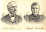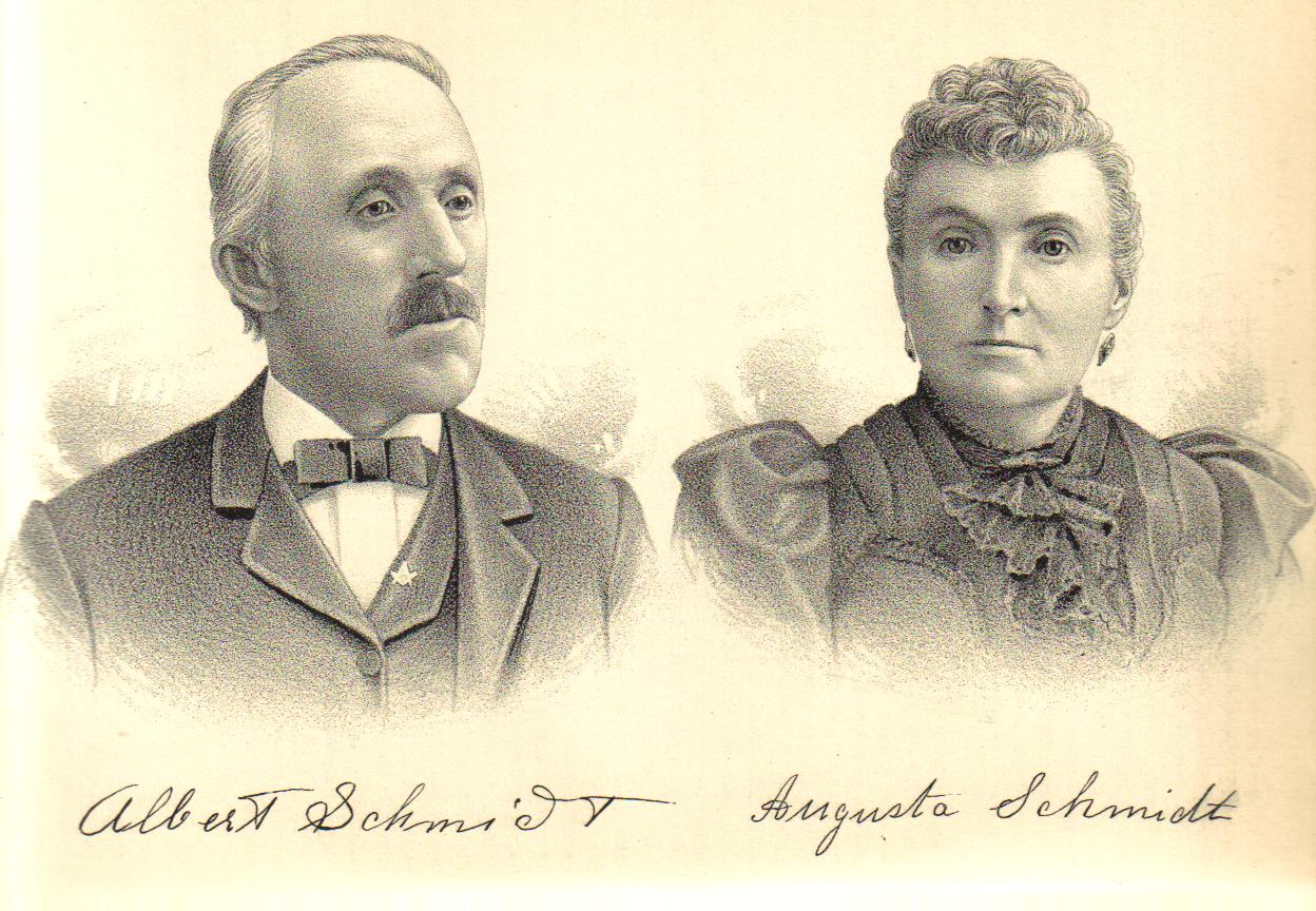 ALBERT SCHMIDT is a man who has ever used his influence in the promotion of the welfare of his fellow-citizens, and has long been an honored resident of Sheboygan Township. He has seen the wonderful development of the county, and it is a source of great enjoyment to him to look backward over the period of forty years he has spent here, and think of the wonderful transformation that has been wrought. He owns a beautiful farm property, one of the most valuable places in the township, situated on section 21. The birth of our subject took place March 4, 1838, in Prussia, Germany, his parents being Daniel and Lizette (Kramer) Schmidt. He is the eldest in a family of twelve children, comprising nine sons and three daughters. At the present time he has five brothers and one sister living. The father was also born in Prussia, in the year 1811, and his death occurred in 1883. He was a blacksmith by trade, and followed that calling until 1860, when he became a farmer. He crossed the Atlantic in 1853, sailing from Hamburg, and after six weeks spent on the high seas landed in New York City. He came to Sheboygan County when it was quite new, the date of his arrival being June, 1853, the year after the cholera had proved so disastrous in this region. He worked at his trade for several years, and then became owner of eighty acres of partly improved land. There was no house on the place, and he was obliged to erect a home for his family. He paid about $350 for the whole tract of land, and engaged in its cultivation until shortly before his death. He was a Democrat, and a man of honesty and integrity. He and his wife were members of the German Reformed Church. The lady was born about 1818, and is still living on the old homestead in Sheboygan Falls Township, with her youngest son. A lad of fourteen years when he came to this county, Albert Schmidt at once set out to learn the blacksmith's trade, at which he worked for two years. Subsequently, he commenced learning the trade of a machinist at Smalley's Globe Foundry and Machine Ships, of which George A. Rodgers was foreman. He continued there until 1857, when he went to Milwaukee, and for three or four months worked in the railroad shops. Thence returning to Sheboygan, he again was employed in the old foundry, which in the mean time had changed hands and was then carried on under the firm name of Shafter, Newell & Vollroth. At the end of two years the firm was again changed, and in 1863 the shops were burned down. When the Globe Foundry was destroyed by fire it was owned by a Mr. Lathrop. Our subject was foreman of the machine shop. Philip Meyer was foreman of the foundry department, and Henry Foeste foreman of the wood-work department. These gentlemen formed a partnership, under the firm name of Foeste & Co., Globe Foundry, erecting works at the corner of Pennsylvania Avenue and Ninth Street. Their work comprised all kinds of machinery, engines, threshing-machines, plows and all kinds of agricultural implements. These gentlemen, who are so well known in the early history of Sheboygan, were in partnership for eleven years and met with signal success. In 1875 Messrs. Schmidt and Philip Meyer sold their interest in the foundry business to their partner and retired entirely from a commercial career. The former purchased eighty acres of land, which was partly improved and only a-half mile distant from the city limits. As the years have passed, the city has been extended, until this farm is now only a quarter of a mile away. The place is one of the most valuable on the Sheboygan Road. It is beautifully located, and the owner has erected a fine modern residence and good barns, in addition to which he has also made other valuable improvements on the place. Land located on the various sides of his farm has been sold at prices ranging from $525 to $1,500 per acre, and thus it can readily be seen that should he choose to sell his place he would be in possession of a large fortune. The marriage of our subject and Miss Augusta Paulmann was celebrated February 28, 1861. The lady is a native of Hanover, born November 10, 1840. To them have been born three children. Lillie is the wife of George J. McGraw, manager of a large wholesale furniture house and of the Crocker Chair Company of Minneapolis, Minn. They have two children. Julia is the wife of Reginald Carl Zillier, one of the leading business men of Sheboygan. They also have two children. Charles A., of Minneapolis, is bookkeeper in the furniture establishment of the Crocker Chair Company, of which his brother-in-law is manager. he has been given a college education and was in the German Bank of Sheboygan for four years. When Mr. and Mrs. Schmidt commenced their married life, they had barely enough money to pay for their marriage license, and now they are classed among the prosperous and representative citizens of Sheboygan Township. This fact shows what can be done by the proper exercise of energy, determination and economy. They have made a fortune for themselves and children, and have given the latter superior educations. For many years they have been members of the Congregational Church of Sheboygan, and have taken a leading part in good works and benevolent enterprises of all kinds. In political sentiment, Mr. Schmidt is a Republican, but cast his first Presidential vote for Stephen A. Douglas. His right of franchise has been exercised as he deems most wise for his country's good. He has never aspired to any position of municipal authority in his township, but is a loyal and patriotic son of his adopted land.