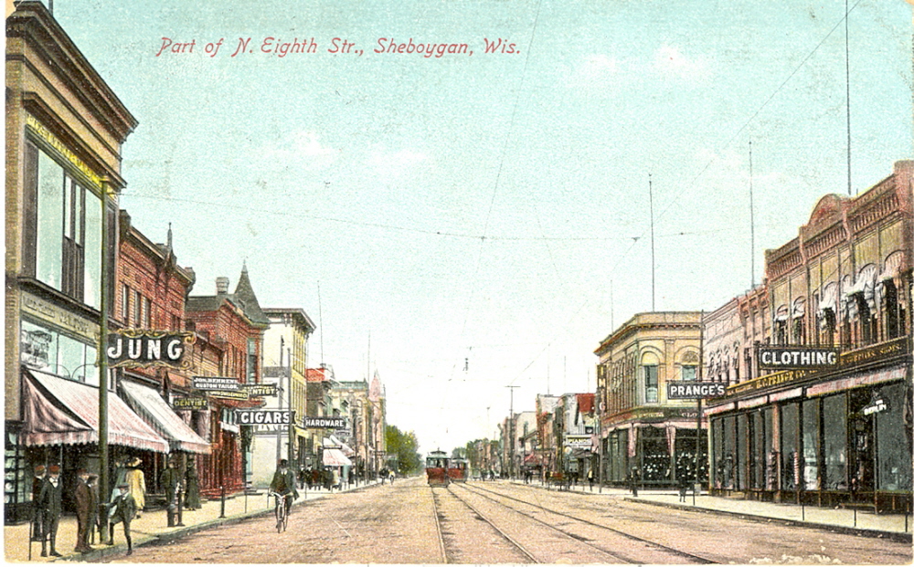 Looking north on 8th Street. Old old Prange's on the right., Sheboygan